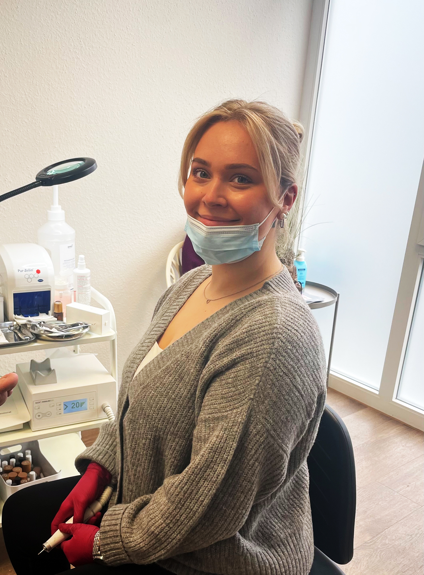 Als wir Lisa kennenlernten, brannte sie komplett für die Kosmetik. Sie absolvierte ihre Kosmetikausbildung im Paderborner Cosmetic-College und kam danach zu uns, um ihre Fußpflegeausbildung „dranzuhängen“.